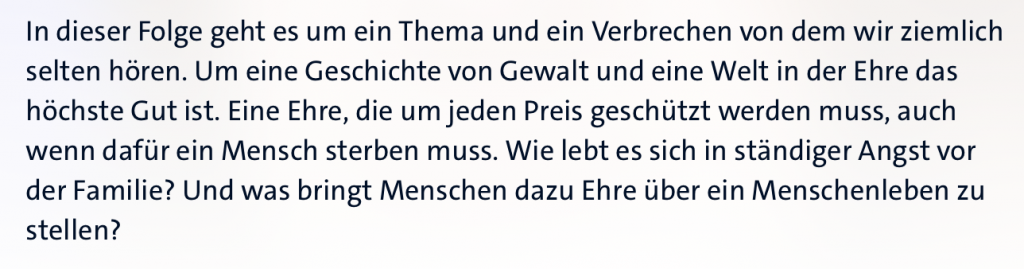 Ehrenmord. 06/02/2026 / Kommentar verfassen Hier gehts zum Podcast: https://www.ardaudiothek.de/episode/urn:ard:episode:2b6a073fe67f2910